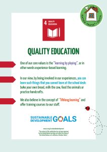 We have a small 300 W windmill that generates electricity that we’re able to store in 2 batteries. This provides power for lighting the “Sustainable Earth Barn”. You can see the windmill in front of the barn.